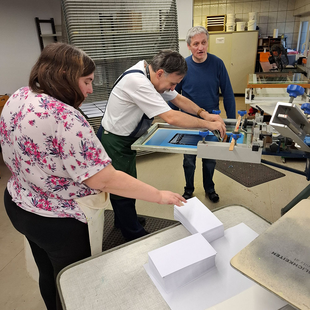 Sie suchen hochwertigen Textildruck oder Stickerei und möchten gleichzeitig ein soziales Projekt unterstützen? Dann sind Sie bei uns genau richtig. Mit jedem Auftrag leisten Sie einen wertvollen Beitrag zur Teilhabe von Menschen mit Beeinträchtigungen am Arbeitsleben und unterstützen eine sinnvolle, regionale Arbeit.